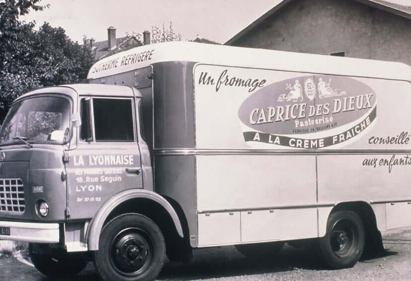 From 1959, Caprice des Dieux dressed its vans that can be seen crisscrossing the roads of France, carrying a cuddly message for all gourmets: Caprice des Dieux, un amour de fromage!
